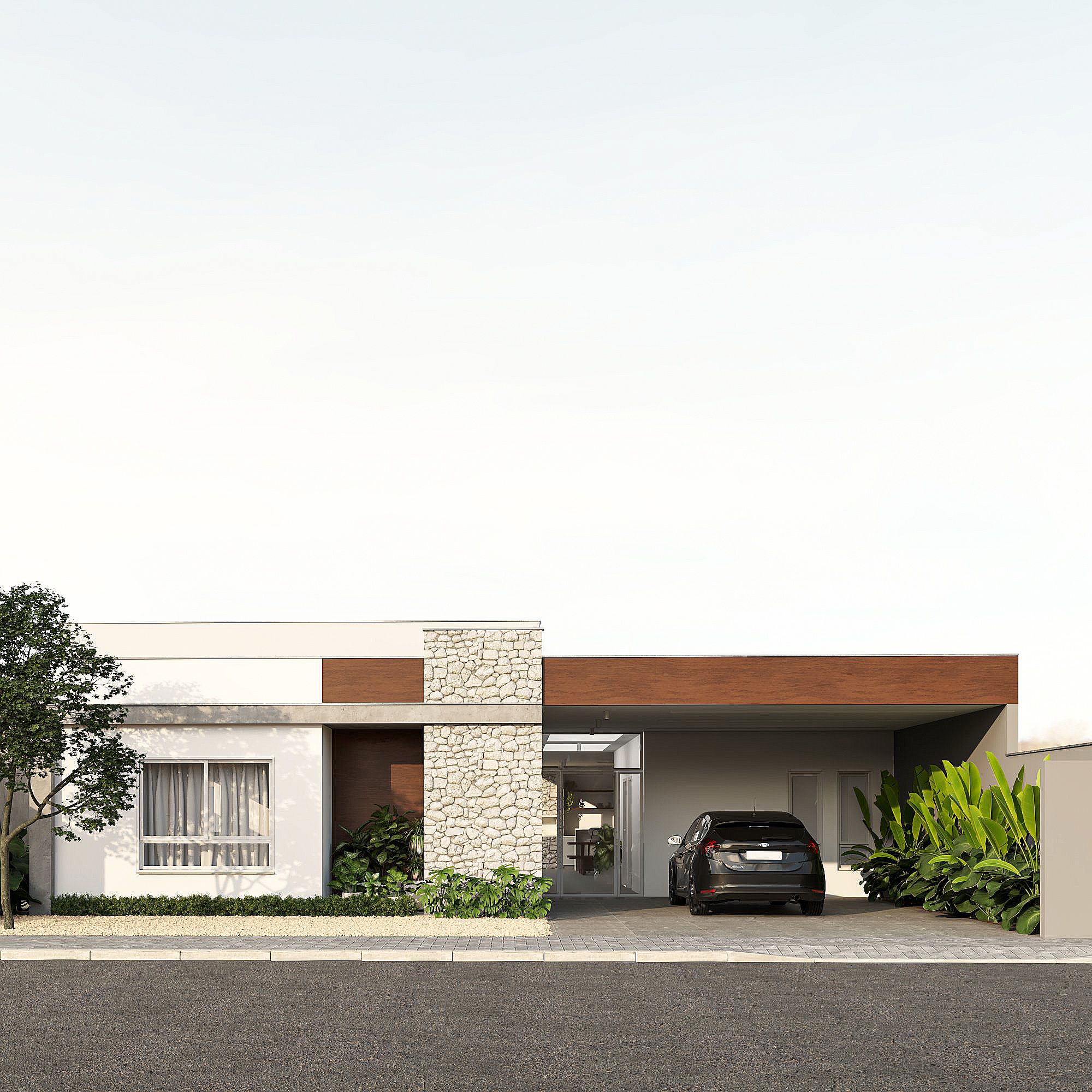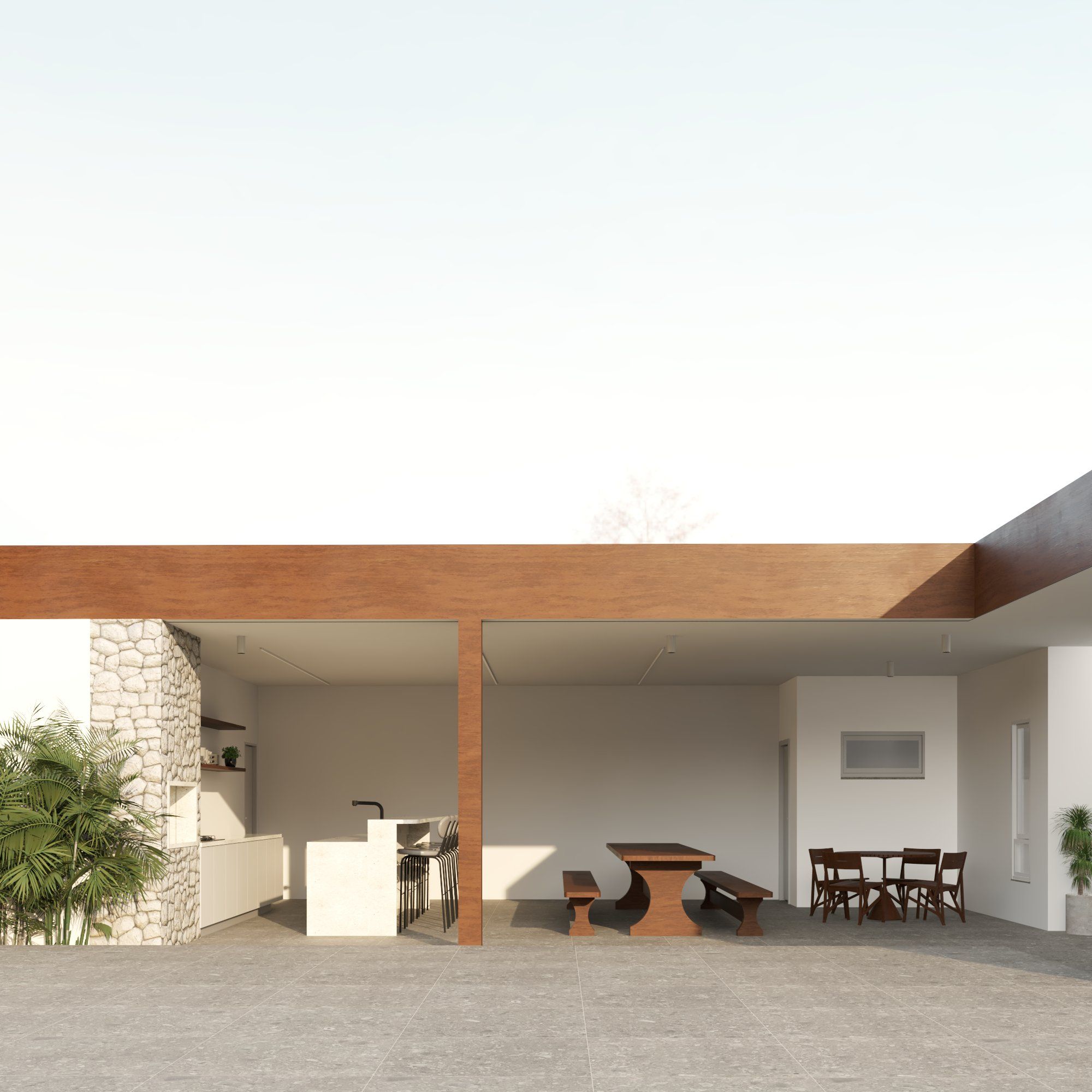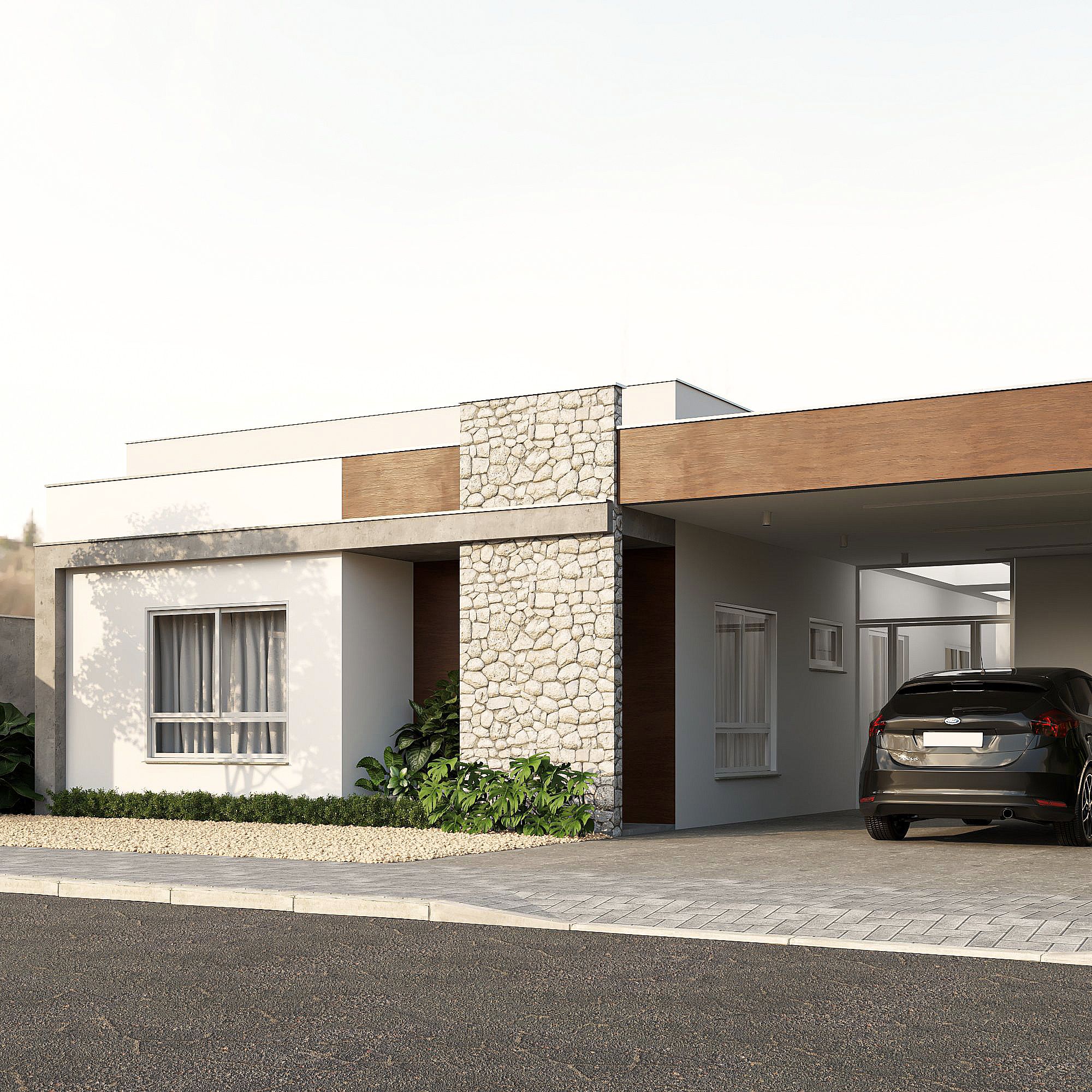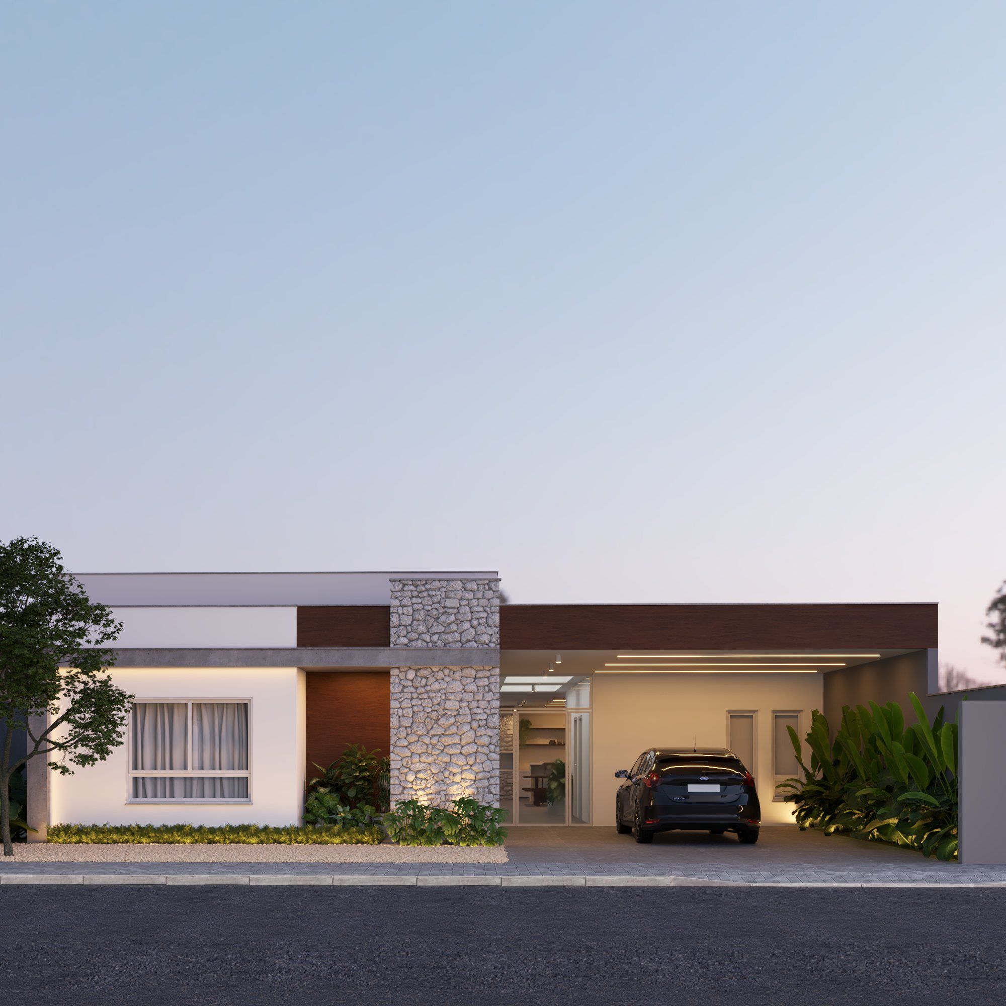 O projeto é uma reforma e ampliação de uma casa existente. Toda lateral e garagem é removida, no lugar são criados uma nova garagem mais amplas, duas salas de trabalho para o casal e área de festas.